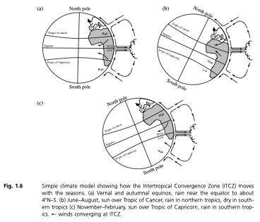Let’s start with the amount of evaporation. Evaporation is caused by water heating, so in our case evaporation is going to increase when the heat from the sun is at its maximum or the oceans are the warmest, so let’s remind ourselves about how the location of maximum heat from the sun changes during the year.