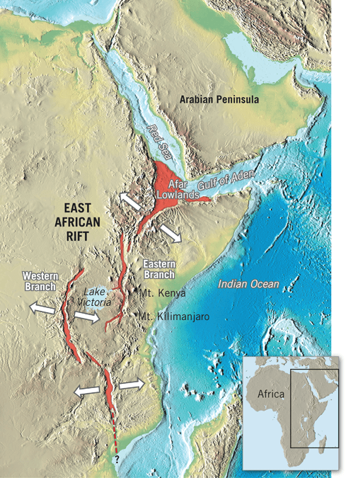 Karibia miaka milioni thelathini iliopita, kipindi cha utenganishaji mwengine ulianza na ndiyo ulisababisha Bonde la Ufa la Africa mashariki (East African Rift System). Mara kwa mara magma ulipenya kwenye miamba na kujitokeza kama volkano. Huu mchaniko ulifuata sehemu dhaifu kama viungo vya zamani, na iligawanyika, upande mmoja ulizungukia upande wa magaribi na kutengeneza bonde la ufa wa magharibi. Upande wa pili, ulifuata mkutanisho wa mkanda wa Msumbiji na ‘craton’ ya Tanzania, na ndiyo inaitwa ufa wa mashariki. keo hili la kuchanika na kuachana siyo kitu cha kirahisi na kilitengeneza maumbo mengine ya ajabu kama volkano, visiwa vya bonde la ufa, na milima ya kiwimawima tutakayoiongelea wakati mwingine.